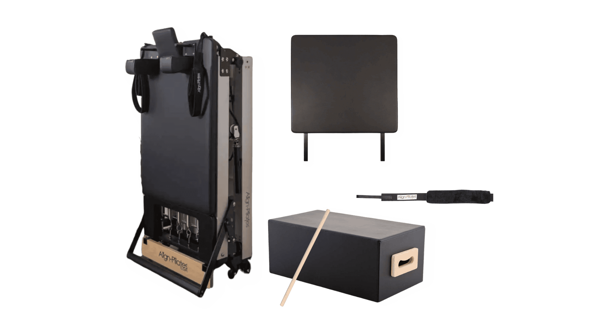 Your complete home reformer setup in one powerful package. The F3 Folding Reformer delivers studio-quality movement in a compact design, paired with the jump board for dynamic cardio work and the roll-up pole for alignment and control. The sitting box expands your exercise range and comfort, and the silent foot strap adds smooth, quiet versatility. A full-featured bundle built for serious home practice.